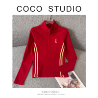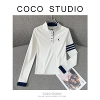 拼接女常规袖休闲风拉链长袖网红秋冬时尚百搭半高领打底衫DDS285