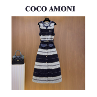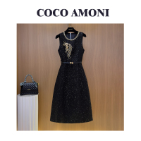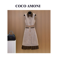 秋冬季轻奢设计师爆款女装拼接收腰显瘦气质连衣裙WXH1151