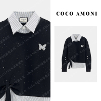 高级设计新款高级感条纹女装拼接气质修身显瘦减龄T恤DDS139