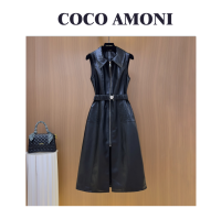 秋冬季时尚设计师爆款女装拼接收腰显瘦气质连衣裙WXH1354