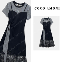 时尚高级设计师夏季新款气质女装拼接重工褶皱显瘦连衣裙ACM100黑